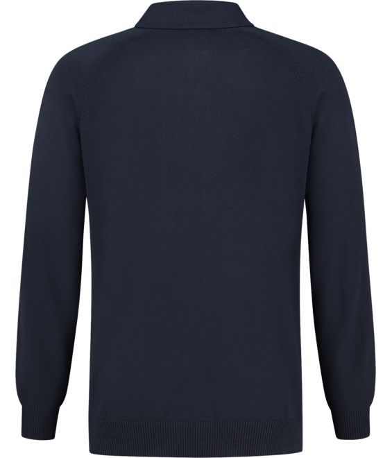 Het 12-gauge breisel zorgt voor een hoogwaardige uitstraling, terwijl de plat gebreide 1x1 polo-ribkraag en 3-knoopsluiting de look een nette, professionele touch geven. De raglanmouwen en de ribmanchetten met 2x2 tailleband bieden extra bewegingsvrijheid en een perfecte pasvorm.