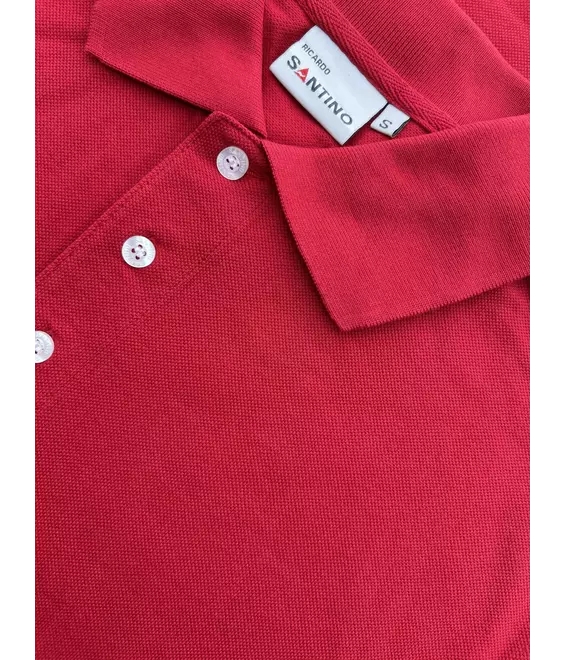 De Santino Ricardo is een comfortabel en duurzaam unisex poloshirt, ideaal voor professioneel gebruik of vrije tijd. Deze uitvoering in rood heeft een opvallende, krachtige uitstraling en is gemaakt van een stevige katoen/polyester-mix (60% katoen / 40% polyester, 210 g/m²).